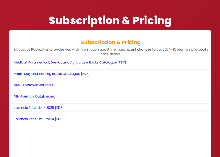 Welcome to IP Innovative Publication, an open access journal publisher dedicated to accelerating scientific discovery and collaboration worldwide.